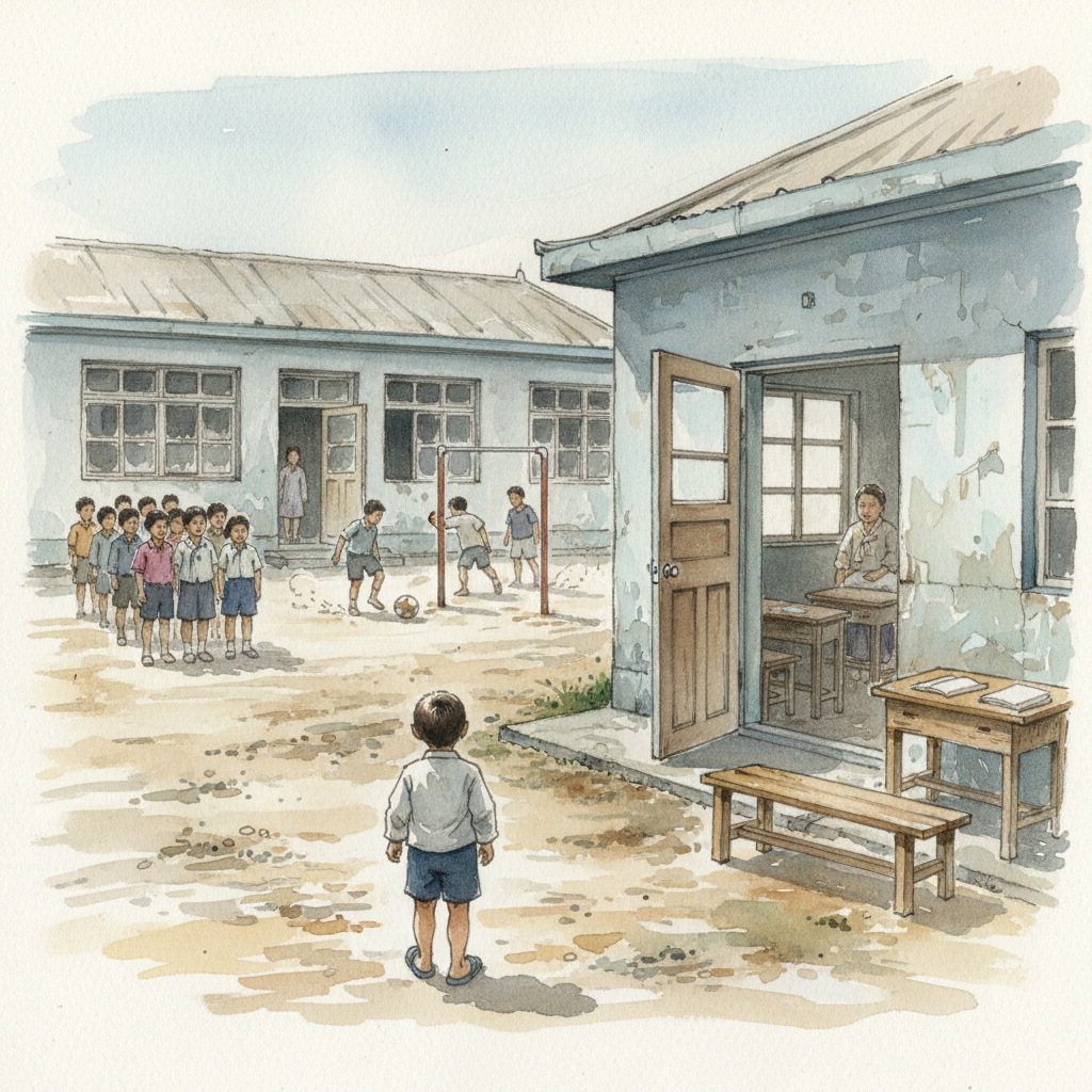 점호 줄이 조금 느슨해졌고, 운동장 끝 철봉 옆에선 아이들이 잠깐씩 공을 찼다. 낮이면 낡은 교실 문이 반쯤 열렸고, 누군가 분필을 쓸어 올리는 소리가 복도에 얇게 흘렀다. 정식 학교는 아니었다. 주말마다 온다는 '선생님'들이 번갈아 들어와 산수, 받아쓰기, 동화 읽기를 돌아가며 가르쳤다. 출석부도, 반 번호도 없었다. 앉고 싶은 아이는 앉았고, 싫증이 나면 슬리퍼를 끌며 조용히 나갔다.