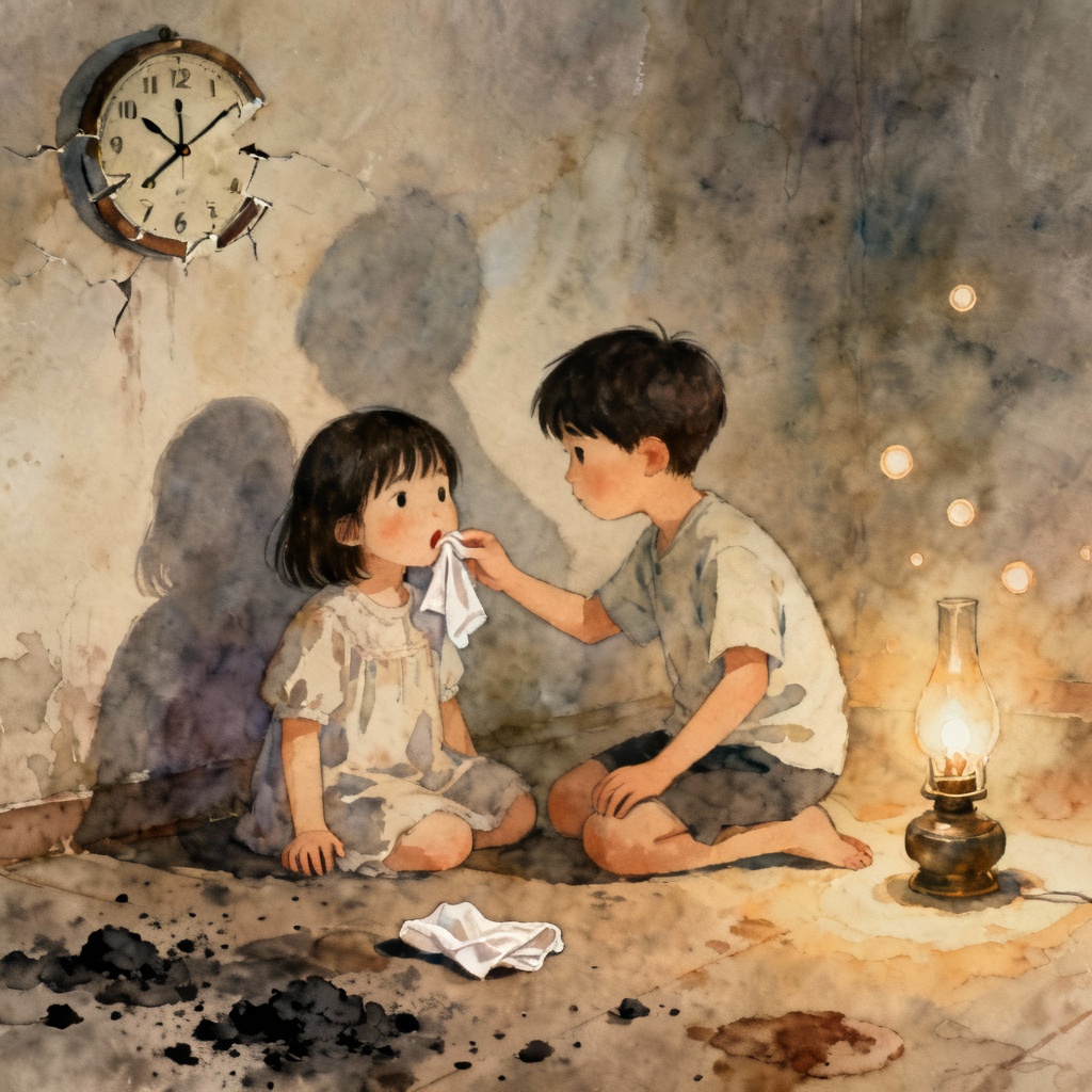 여동생의 얼굴을 나는 끝내 정확히 다시 그리지 못한다. 대신 그 밤의 조각들을 붙든다. 조그마한 손등, 구겨진 치맛단, 형의 움켜쥔 주먹, 떨리던 등잔, 문틈의 바람 온도, 쇠 맛이 배인 손수건.